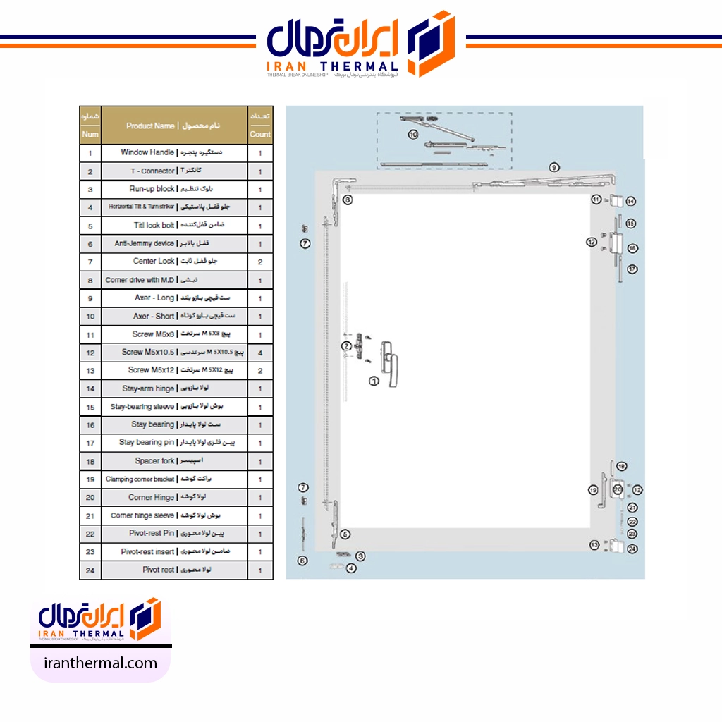 ایران ترمال به عنوان تامینکننده پیشرو در صنعت یراق آلات، مرجع تخصصی شما برای خرید و استعلام قیمت انواع یراق آلات در و پنجره آلومینیومی با تمرکز ویژه بر سیستمهای نوین ترمال بریک (Thermal Break) و نرمال است. ما با درک عمیق از نیازهای پروژههای ساختمانی مدرن، مجموعهای کامل از محصولات باکیفیت را گرد هم آوردهایم تا امنیت، دوام، زیبایی و کارایی را برای سازه شما به ارمغان بیاوریم.