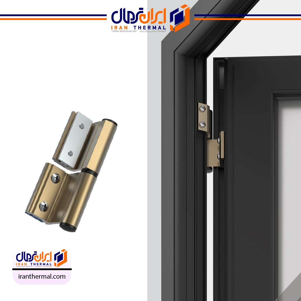 - یراق آلات ترمال بریک: به دلیل ساختار پیچیده و عمق بیشتر پروفیل، امکان نصب لولاها به صورت کاملاً پنهان فراهم میشود. در این حالت، هنگامی که پنجره بسته است، هیچ یک از اجزای مکانیکی (لولاهای بالایی و پایینی) قابل مشاهده نیستند. این امر ظاهری مینیمال، تمیز و یکپارچه به پنجره میبخشد که در طراحیهای مدرن بسیار پرطرفدار است.
