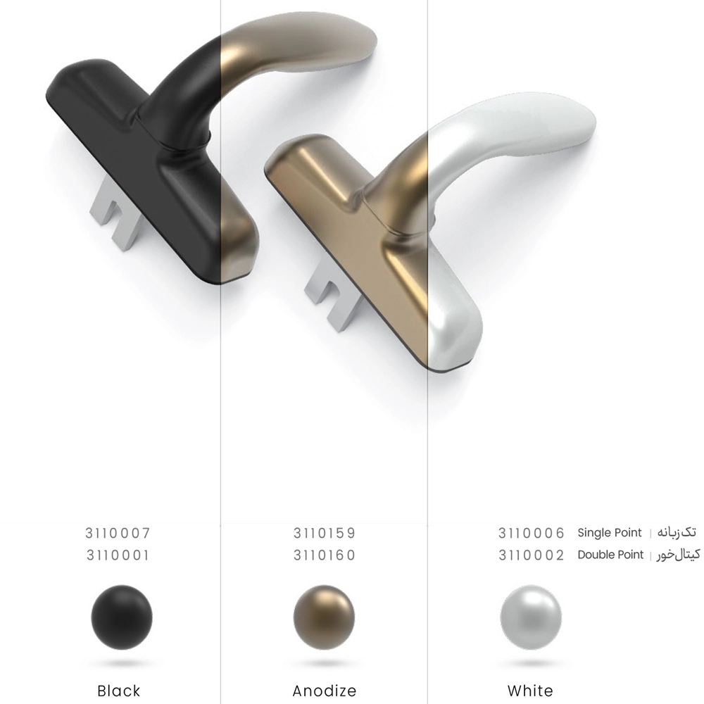 رنگ ثابت و ماندگار: دستگیره W400 در سه رنگ مشکی، سفید و طلایی موجود است که علاوه بر زیبایی، در برابر خوردگی و تغییر رنگ مقاوم هستند و جذابیت خود را برای سالها حفظ میکنند.